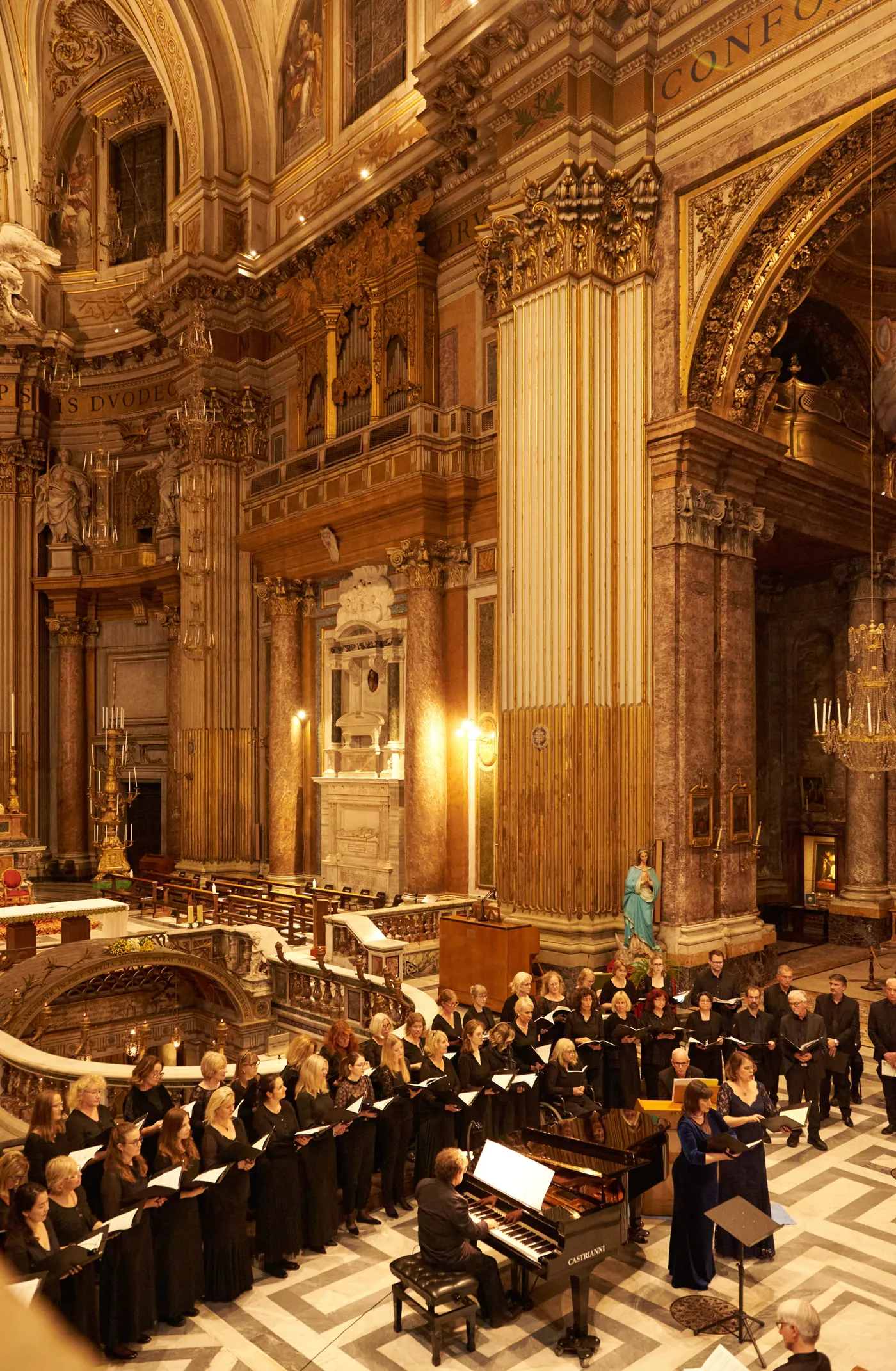 Rom ist nicht einfach nur "Freilichtmuseum", unverzichtbarer Bestandteil einer jeglichen Bucket-Liste es ist vielmehr lebendiges Chaos aus 3.000 Jahren Geschichte, ein Zustand, den man aushalten und gleichzeitig lieben muss. Der Mix aus antikem Erbe, hupenden Vespas und dem besten Espresso an der Ecke gab auch uns Chorsänger-/innen seinen ganz speziellen Rhythmus vor. Allerdings waren wir nicht angereist, um in dieser lebendigen Kulisse nur Zuschauer zu sein, vielmehr wollten wir nichts weniger als Teil davon werden. Mit Rossinis "Petite Messe Solennelle" setzten wir nach temperamentvollen Besichtigungstouren unter kompetentem italienischem Kommando und ehrgeizigen Proben in der wunderschönen Basilica dei Santi XII Apostoli schließlich zum "gran finale" an, das all diese Puzzleteile zu einem stimmigen Ganzen zusammenfügte.