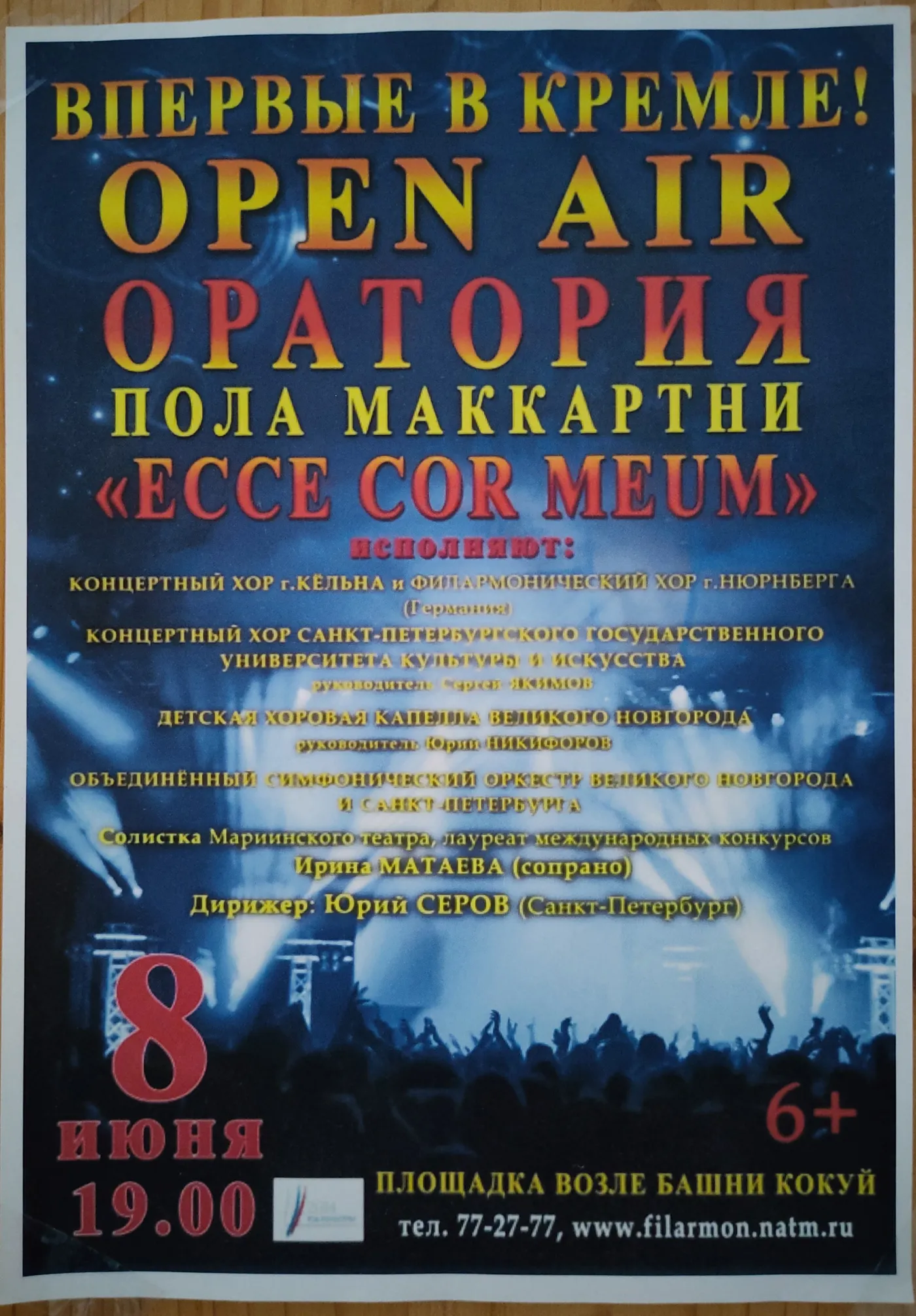 Am Pfingstwochenende 2014 machten wir uns zusammen mit dem KölnChor auf den Weg an den Ilmensee, um im Rahmen des örtlichen Open-Air-Festivals Paul McCartneys Oratorium „Ecce Cor Meum“, unterstützt von Orchester und Kinderchor aus Novgorod, aufzuführen. Unser Konzert, das eigentlich als Freilichtveranstaltung geplant war, wurde aufgrund der instabilen Wetterlage kurzerhand in den Saal der Nowgoroder Gebietsphilharmonie verlegt. Der Begeisterung des Publikums tat dies allerdings keinen Abbruch.