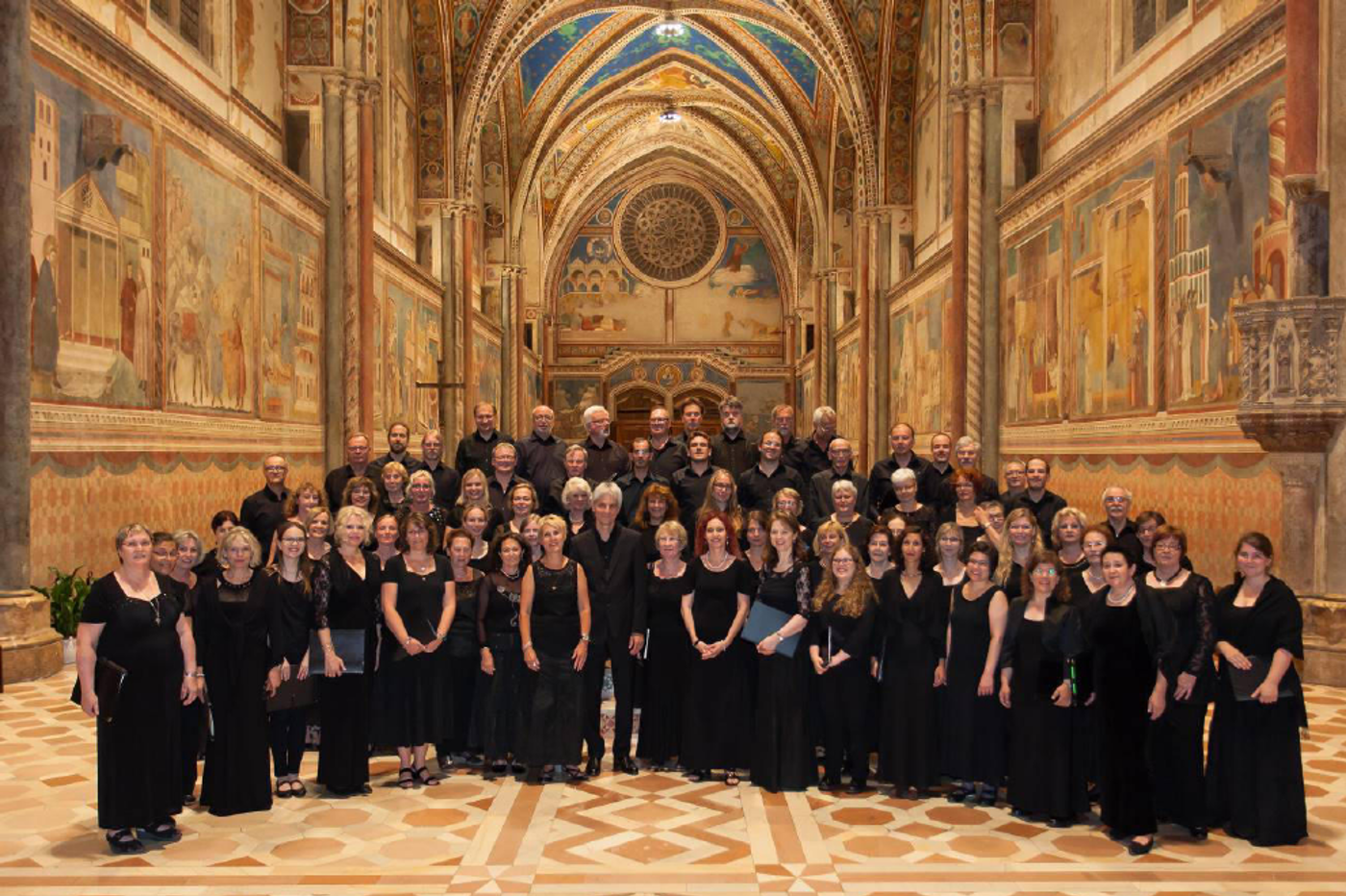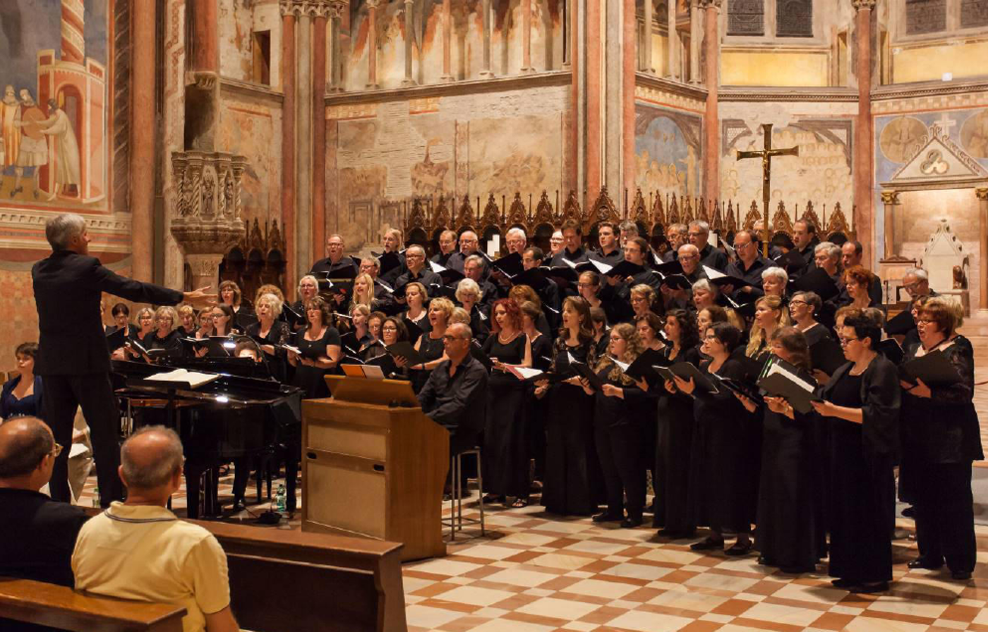 Mit der "Petite Messe Solennelle", einem der bedeutendsten Alterswerke Gioachino Rossinis, die wir in der Fassung für Soli (heimische Künstler), Chor, Klavier und Harmonium (heimische Künstler) darboten, durften wir in der imposanten Basilika San Francesco auftreten – der Grablegungskirche des Heiligen Franziskus, und vor diesem Hintergrund ganz gewiss eine große Ehre für unseren Chor. Die überwältigende mittelalterliche Architektur, die spektakulären Giotto-Fresken und eine wahrhaft grandiose Akustik lieferten den eindrucksvollen Rahmen für einen stimmigen, perfekt intonierten Auftritt des Philharmonischen Chors.